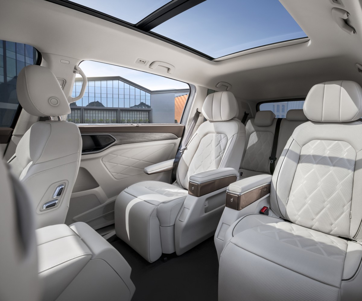 Không gian nội thất của Volkswagen Viloran mang lại sự thoải mái với 7 chỗ ngồi rộng rãi. Vật liệu nội thất bao gồm da và gỗ, cùng với các chi tiết tinh tế, mang đến cảm giác sang trọng nhưng không quá cầu kỳ. Ghế lái và các ghế hành khách có thể điều chỉnh nhiều hướng, giúp người ngồi dễ dàng tìm thấy tư thế phù hợp trong suốt hành trình. Hệ thống điều hòa 3 vùng tự động giúp duy trì nhiệt độ lý tưởng cho mọi hành khách.